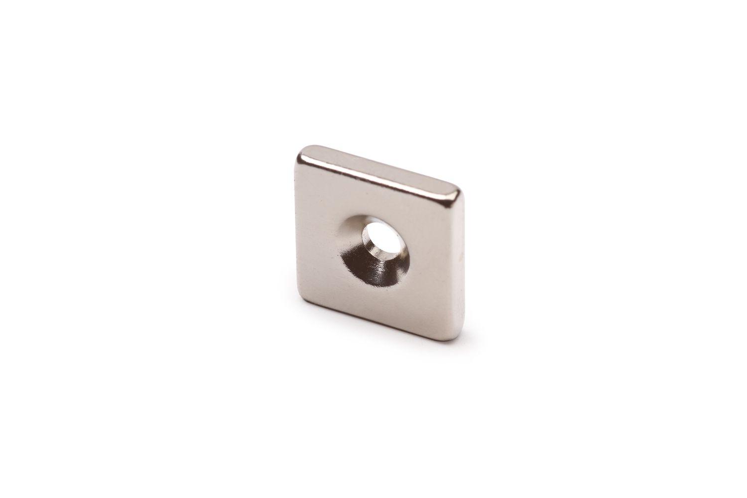 15х15. Неодимовый магнит призма 15х15х3 мм с зенковкой 3/6 мм