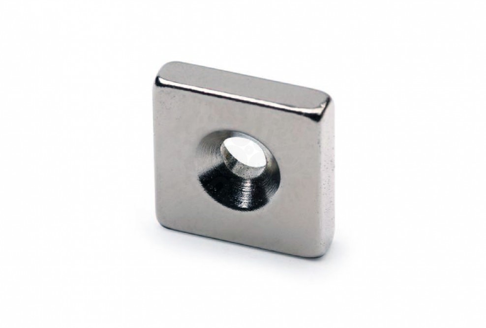 12х12. Неодимовый магнит призма 12х12х3 мм с зенковкой 3,5/7 мм