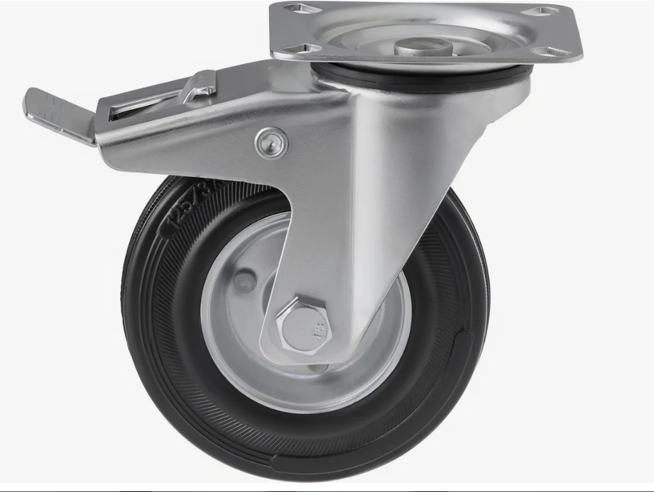125мм. SRCB 55 Колесо 125мм (100кг) поворот.черная резина с торм.платформа