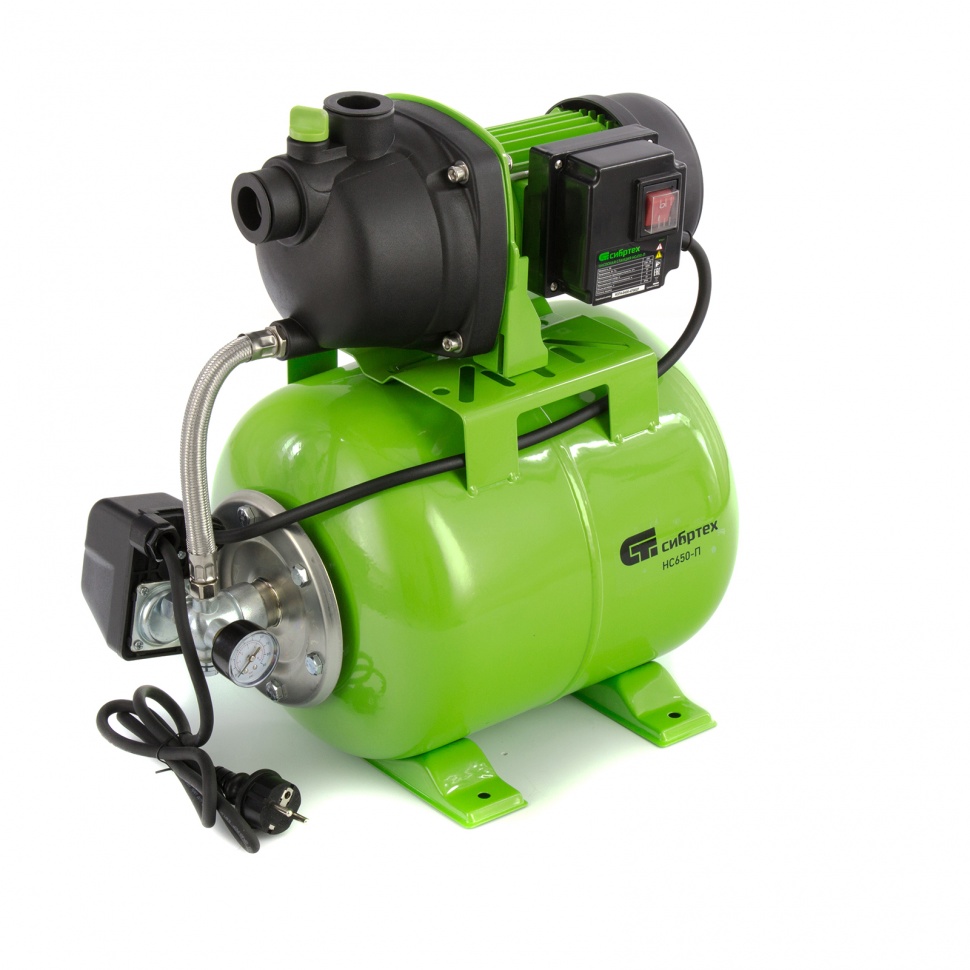 Насосная станция НС650-П, 650 Вт, напор 37 м, 3200 л/ч, ресивер 19 л// Сибртех
