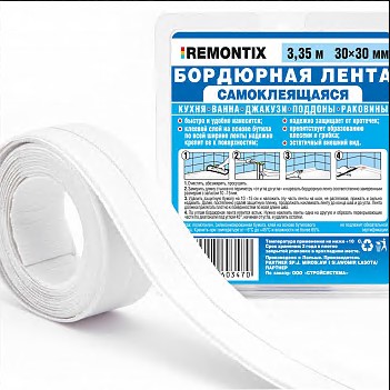 Remontix, бордюрная лента 30х30мм, белый, 3,35м