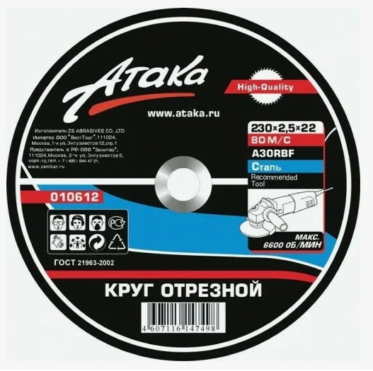 Круг отрезной по металлу 230*2,0 АТАКА