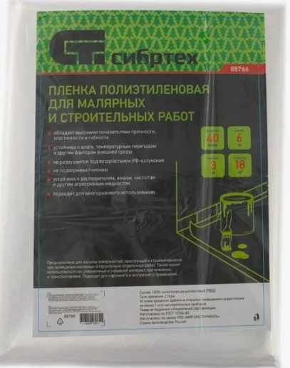 40мкм. Пленка полиэтиленовая 3 х 6 м, 40 мкм// Сибртех