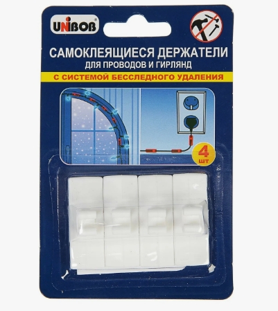 Самоклеющиеся держатели для проводов и гирлянд Unibob, 4 шт/упак 49001