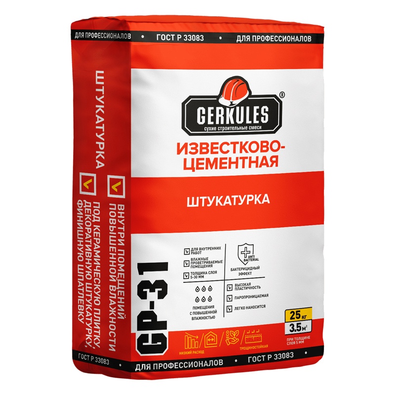 25кг. ГЕРКУЛЕС GP-31 Штукатурная смесь известково-цементная (25кг)