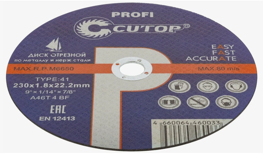 Диск отрезной по металлу Т41-230х1,6х22,2 Cutop Profi