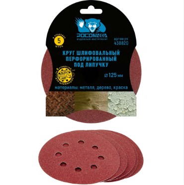 Круг 125 мм зерно 24 шлифовальный, перфорированный 8 отверстий под липучку (5 шт./уп.) "РОСОМАХА"