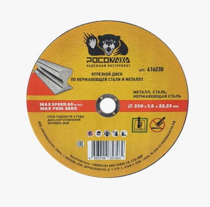 Диск 230*1,6 мм отрезной по нержавеющей стали и металлу "РОСОМАХА"