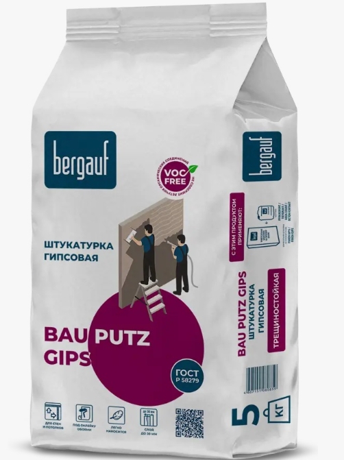 5кг. БЕРГАУФ Штукатурка гипсовая Бау Путц (5кг)