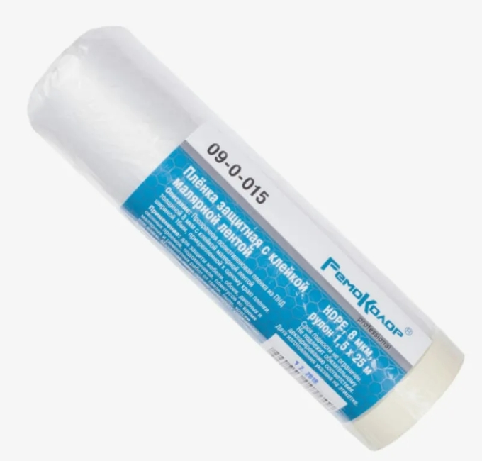 Плёнка защитная, рулон 2,1х25м с клейкой малярной лентой, прозрачная, HDPE, толщина 8мкм, (шт.)
