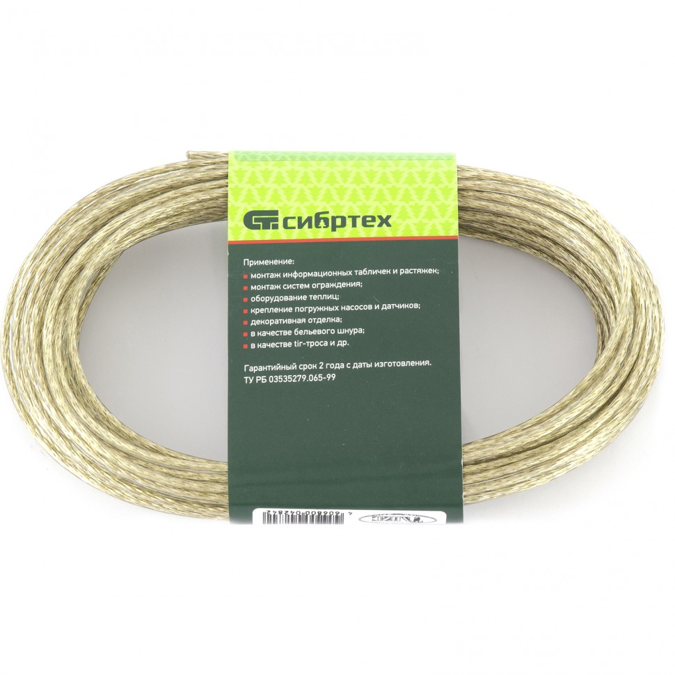 Трос металлополимерный прозрачный ПР-3.0, (3,0мм толщина, моток 20м.п.), Россия// Сибртех