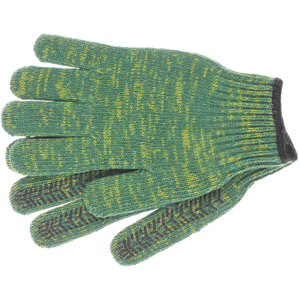 Перчатки трикотажные усиленные, гелевое ПВХ-покрытие, 7 класс, зеленые, Россия// Сибртех