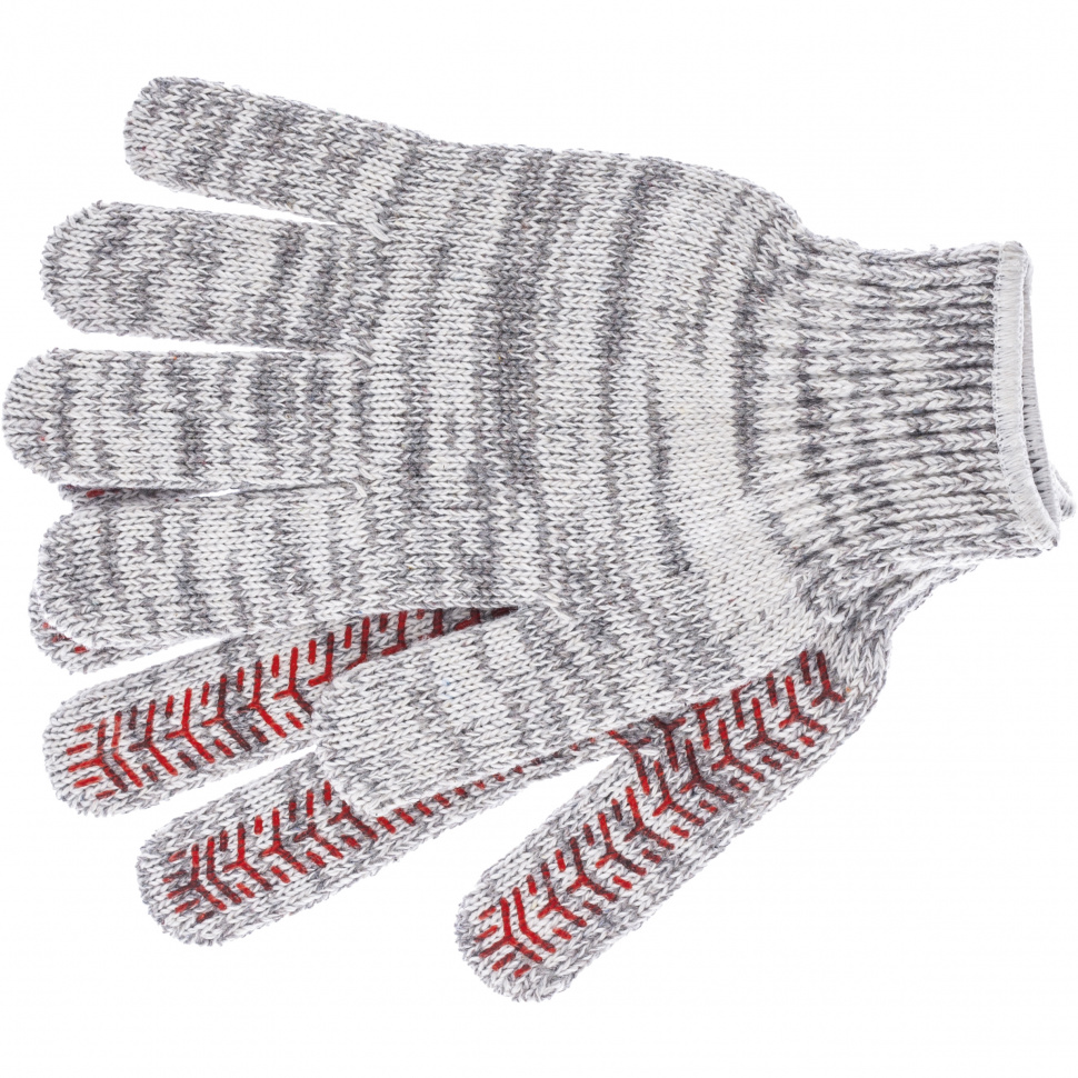 Перчатки трикотажные усиленные, гелевое ПВХ-покрытие, 7 класс, бело-серый меланж, Россия// Сибртех