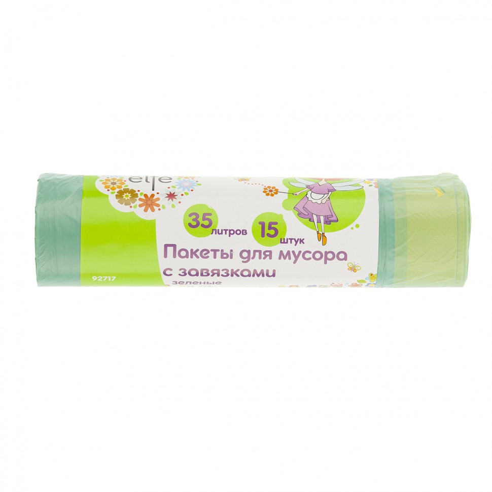 Пакеты для мусора с завязками 35 л x 15 шт., зеленые, Россия// Elfe