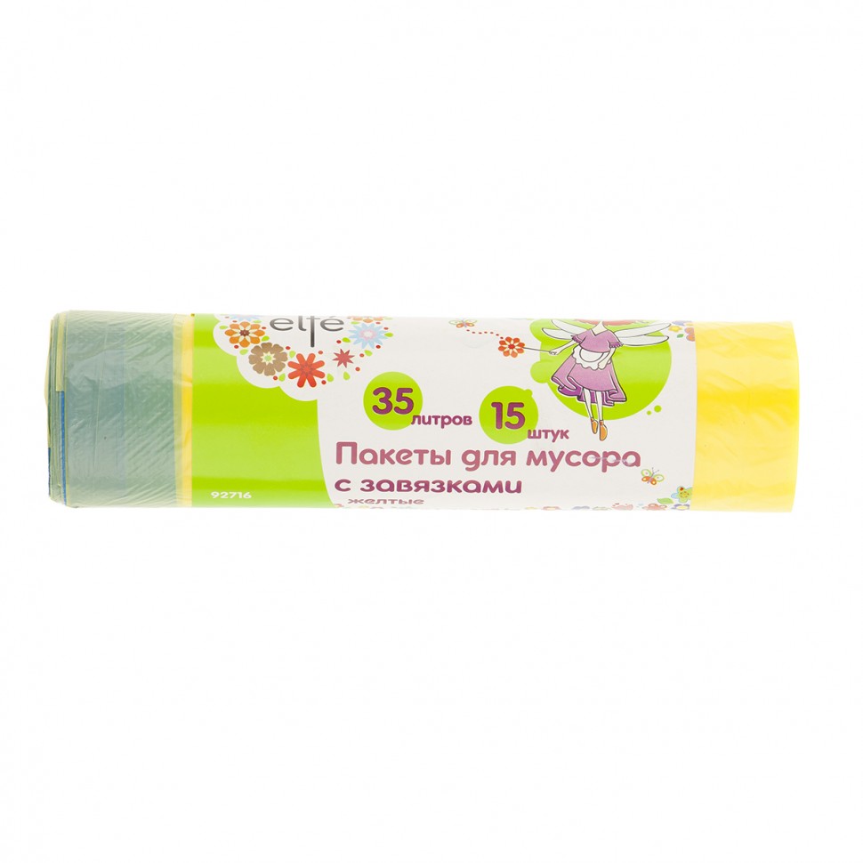 Пакеты для мусора с завязками 35 л x 15 шт., желтые, Россия// Elfe