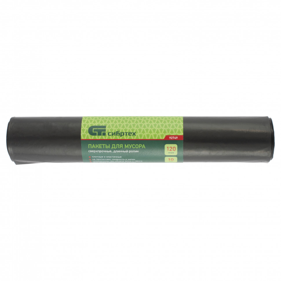 Пакеты для мусора 120л х 10шт., пвд сверхпрочные, длинный ролик, Россия// Сибртех