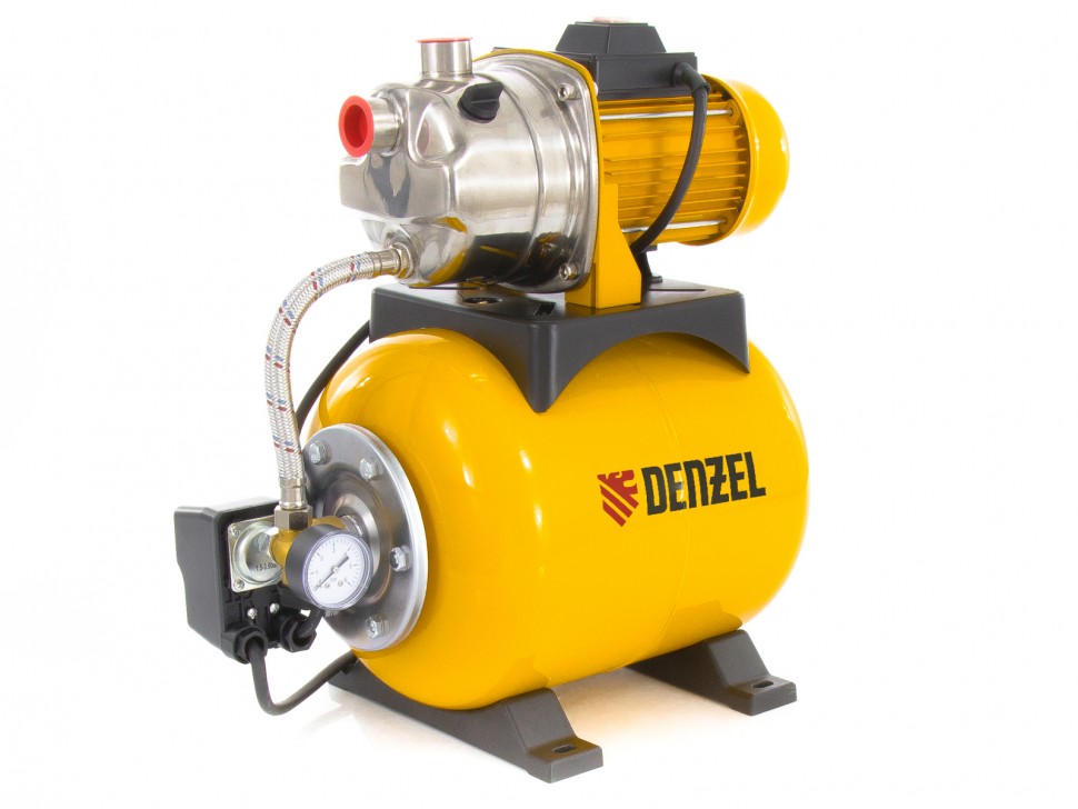 Насосная станция PS1000X, 1000 Вт, 3500 л/ч, ресивер 24 л, подъем 44 м, нержавейка// Denzel