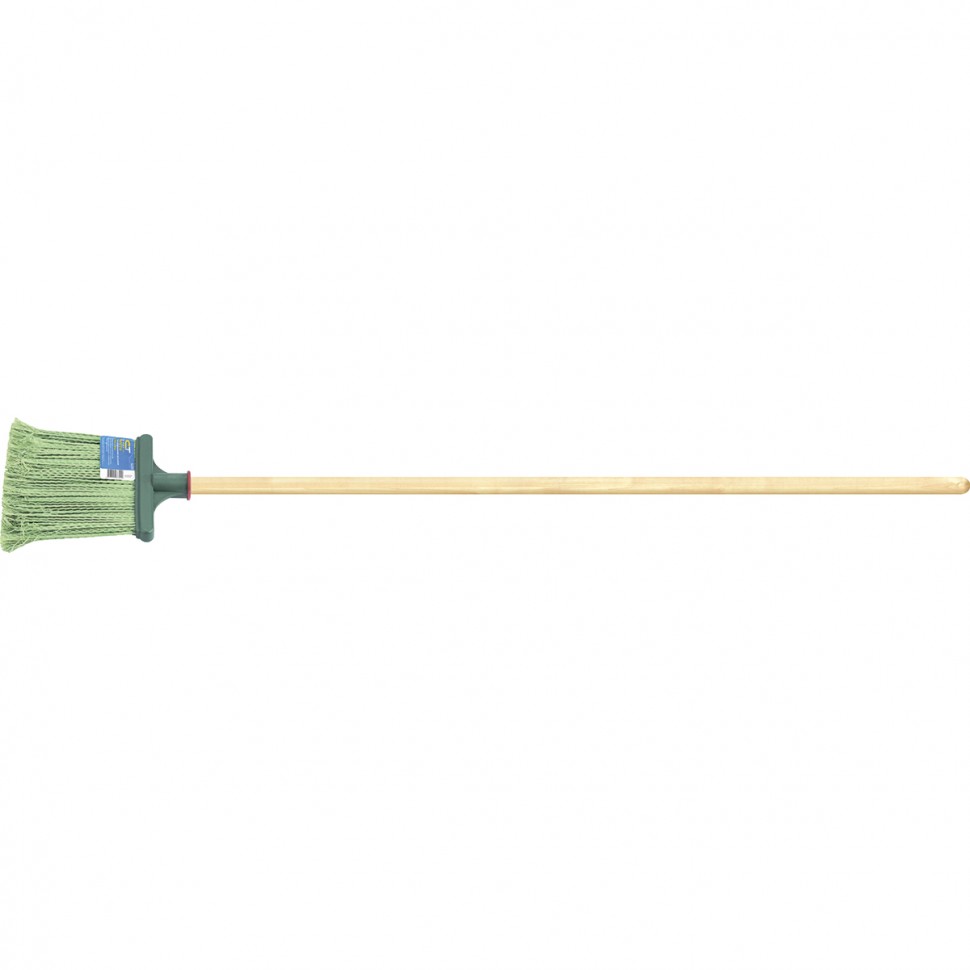 Метла полипропиленовая, 240х160х1400 мм, плоская распушенная, деревянный черенок, Россия// Сибртех