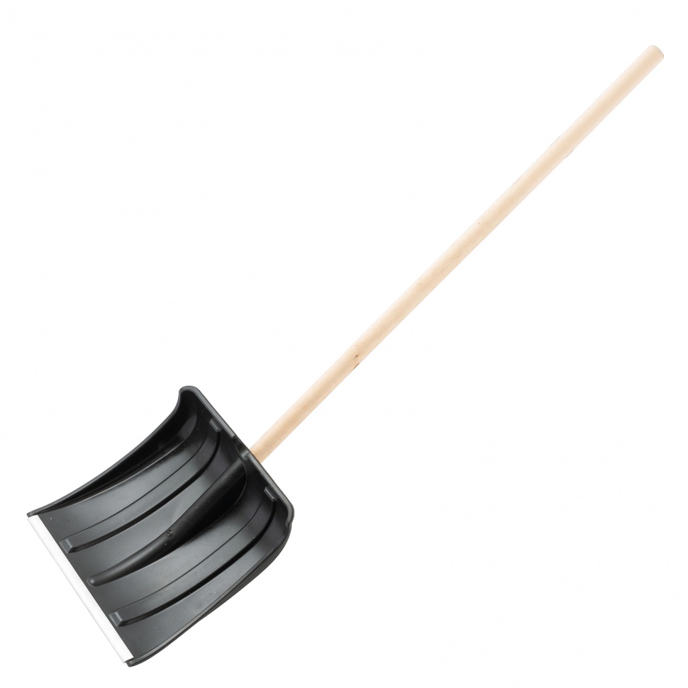 Лопата для уборки снега пластиковая, 350х350х1445 мм, деревянный черенок// Россия